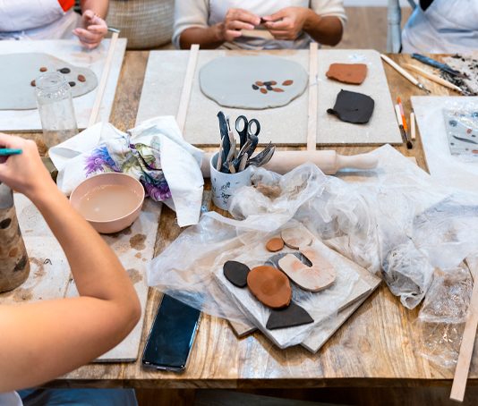 We use high-quality, non-toxic epoxy resin combined with pigments and natural elements to create vibrant, durable pieces.